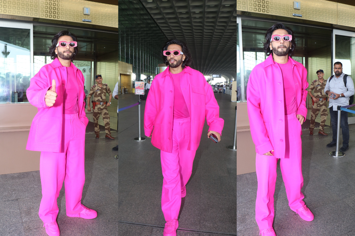 तस्वीर में रणवीर सिर से पैर तक पिंक कलर के आउटफिट में नजर आ रहे हैं। उन्होंने पिंक टी-शर्ट के साथ ही पिंक जैकेट, पैंट और जूते भी गुलाबी रंग के ही पहने हैं।