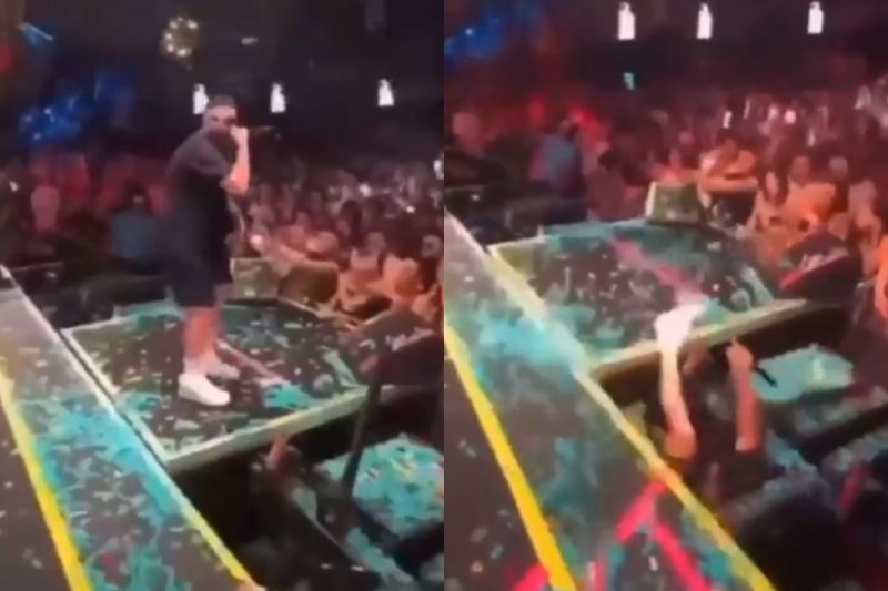 स्टेज के बराबर की जगह में ये सिंगर जोर से गिरता है।