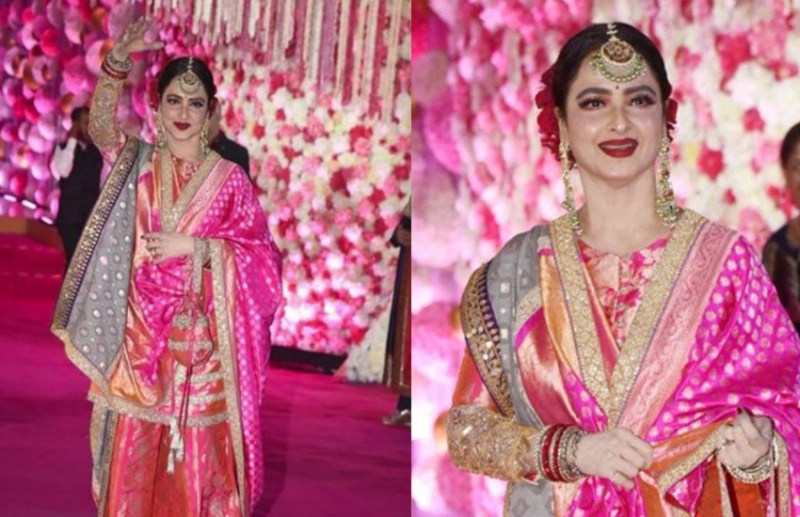 लेकिन जैसे ही रेखा कार से उतरीं, सभी की नजरें उनपर टिक गईं। इस शादी में रेखा एक शरारा ड्रेस में नजर आईं। गुलाबी रंग का ये शरारा उनपर खूब फब रहा था। साथ में रेखा ने लाल रंग का गुलाब बालों में लगा रखा था। ये गुलाब उनकी खूबसूरती को चार चांद लगा रहा था।