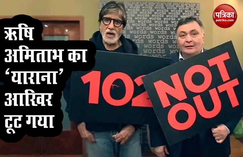 इसके बाद करीब 27 साल ये जोड़ी क बार फिर पर्दे पर नजर आई। जिसमें ऋषि कपूर और अमिताभ बच्चन एक नया रिश्ता काफी हैरान कर देने वाला था। इस फिल्म में अमिताभ एक 102 के पिता के रोल में हैं और ऋषि कपूर उनके बुजुर्ग बेटे के किरदार में नजर आए थे। फिल्म का मकसद यही बताना है कि जबतक लाइफ हैं उसे अच्छे से जिया जाये। साथ ही पिता बेटे के रिश्ते को बखूबी दिखाया गया है। जो आपकी आंखे भिगो देगा।