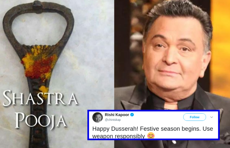 ऋषि कपूर ने सिंदूर और चंदन लगे बोतल ओपनर की फोटो शेयर कर लिखा, 'शस्त्र पूजा', बुरी तरह हुए ट्रोल