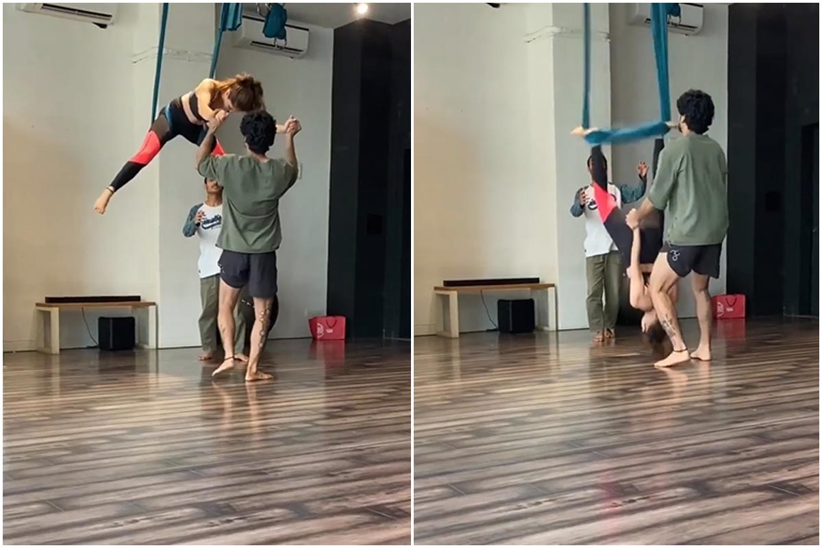वीडियो में आप देख सकते हैं कि दो ट्रेनर्स की मौजूदगी में रुबीना खतरनाक स्टंट कर रही हैं। एक कपड़े की मदद से वो ऊपर से नीचे की ओर आ रही होती हैं, लेकिन अचानक उनका बैलेंस बिगड़ा जाता है और वो उल्टा गिर जाती हैं। हालांकि ट्रेनर उन्हें संभाल लेते हैं।