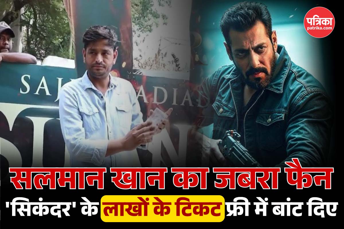 Salman Khan Crazy Fan: सलमान खान की मोस्ट अवेटेड फिल्म ‘सिकंदर’ को लेकर फैंस का उत्साह सातवें आसमान पर है। राजस्थान के एक जबरा फैन ने सलमान खान के लिए दीवानगी की हद पार कर दी। कुलदीप ने 1.72 लाख की सिकंदर मूवी की टिकट खरीदकर लोगों को फ्री में बांट दिया।