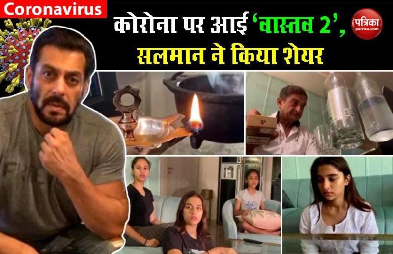 सलमान ने इस वीडियो को शेयर करते हुए लिखा है- इंडिया फाइट्स कोरोना। फैंस इस फिल्म की बेहद तारीफ कर रहे हैं और खुद भी लोगों से घर ने ना निकलने की अपील करते नजर आ रहे हैं। बता दें कि फिल्म वास्तव 2 को महेश मांजरेकर ने अपने ही घर पर शूट किया है, साथ ही उन्होंने इसको लिखने और डायरेक्शन का काम भी किया है। वहीं दबंग 3 एक्ट्रेस सई मांजरेकर ने इस फिल्म को एडिट किया है। सलमान आजकल खूब वीडियो शेयर कर रहे हैं कुछ दिनों पहले उन्होंने अपने भांजे के साथ एक वीडियो बनाया था। जिसमें वो कह रहे थे कि उन्हें अपने फॉर्म हाउस में डर लग रहा है। वो लॉकडाउन के वक्त से ही घर से दूर पनवेल वाले फॉर्म हाउस में रह रहे हैं।