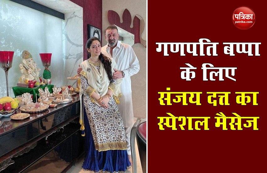 नई दिल्ली। गणेश चतुर्थी ( Ganesh Chaturthi 2020 ) की धूम पूरे देश में देखने को मिल रही है। बॉलीवुड में भी गणपति बप्पा की धूम देखने को मिली। सेलेब्स ने अपने-अपने अंदाज में बप्पा का स्वागत किया। सलमान खान ( Salman Khan ) से लेकर शिल्पा शेट्टी ( Shilpa Shetty ) ने गणेश चतुर्थी के पर्व को मनाया। इस खास मौके पर अभिनेता संजया दत्त ( Sanjay Dutt ) ने भी एक तस्वीर शेयर की। फोटो में वह पत्नी मान्यता ( Manyata Dutt ) संग दिखाई दे रहे हैं। फोटो को शेयर करते हुए उन्होंने कैप्शन में इमोशनल मैसेज लिखा है। जिसे पर पढ़कर हर कोई संजय के लिए जल्द ठीक होने की कामना कर रहा है।