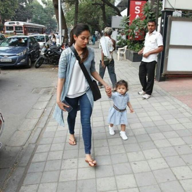 शाहिद की लाड़ली मीशा की वैसे तो हर फोटो पसंद की जा जाती है, लेकिन इस समय उनके स्कूल ड्रेस की फोटो को खूब पसंद किया जा रहा है। वायरल हो रही फाटो में मिशा ने व्हाइट फ्रॉक टाइप स्कूल यूनिफॉर्म पहन रखा है। वहीं मीरा भी कैशुअल लुक में नजर आ रहीं हैं। उन्होंने कैशुअल टॉप, फेडेड जीन्स पहना है और ब्लैक स्लिंग बैग कैरी किया है।