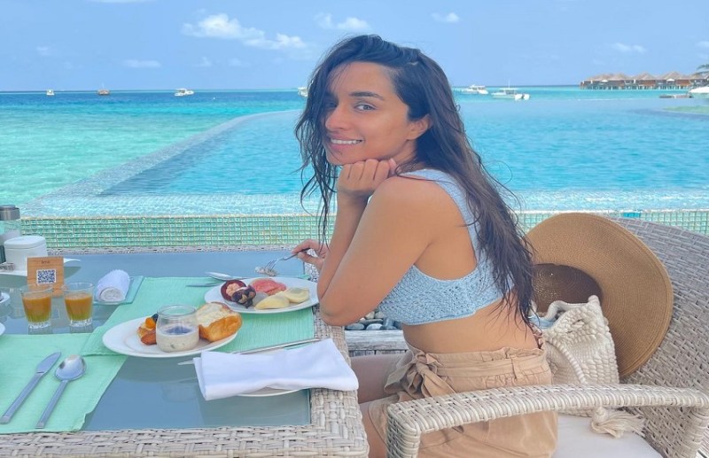 श्रद्धा कपूर ने मालदीव से अपनी कुछ तस्वीरें भी शेयर की है। श्रद्धा ने कुछ देर पहले एक फोटो शेयर की है, जिसमें वह ब्रेकफास्ट करती नजर आ रही हैं। समुद्र किनारे बैठीं श्रद्धा ने लाइट ब्लू कलर का टॉप और शॉर्ट्स पहने हुए हैं। वहीं, उनके बाल बिखरे हुए नजर आ रहे हैं। इस तस्वीर को शेयर करते हुए श्रद्धा ने कैप्शन में लिखा, आत्मा के लिए नाश्ता। उनकी ये तस्वीर सोशल मीडिया पर अब काफी वायरल हो रही है। उनकी फोटो पर कुछ ही देर में 13 लाख से ज्यादा लाइक्स आ चुके हैं। साथ ही, फैंस कमेंट कर उनकी तारीफ कर रहे हैं।