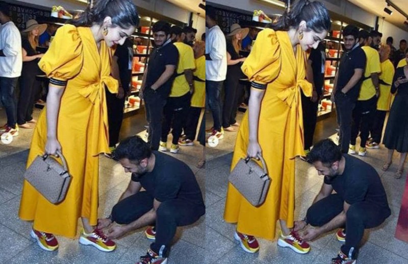 बॉलीवुड एक्ट्रेस Sonam Kapoor Ahuja और Anand Ahuja की एक तस्वीर सोशल मीडिया पर चर्चा का विषय बनी हुई है। इस तस्वीर को लेकर फैंस उनके कई तरह के सवाल पूछ रहे हैं। दरअसल, हाल ही में सोनम और आनंद एक स्टोर स्टोर लॉन्च इंवेट पर पहुंचे थे। इस दौरान आनंद स्टोर में ही सोनम के जूते के फीते बांधते नजर आए। आनंद को ऐसा करते देख वहां मौजूद सभी हैरान रह गए।