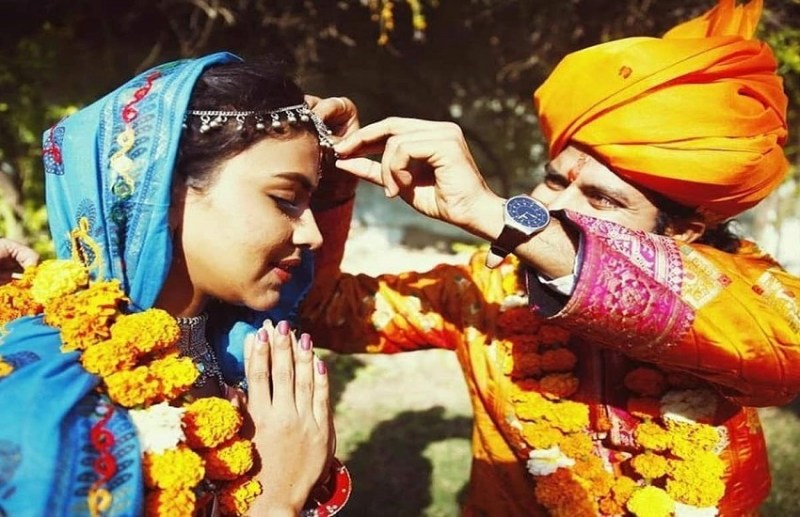 वहीं अगर आप दूसरी फोटो में देखें तो भवेंद्र आमला की मांग में सिंदूर भरते नज़र आ रहे हैं।
