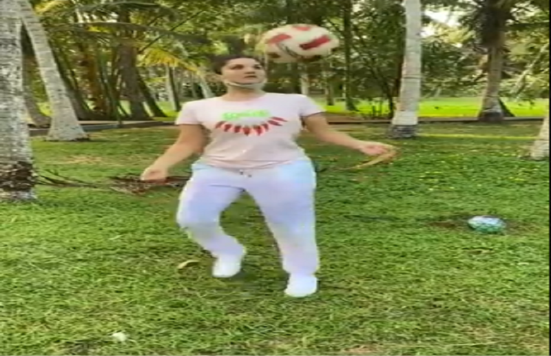 नई दिल्ली | बॉलीवुड एक्ट्रेस सनी लियोनी (Sunny Leone) सोशल मीडिया (social media) पर खूब एक्टिव रहत हैं। वो आए दिन अपने फनी वीडियो शेयर करती रहती हैं। पिछले दिनों उन्होंने पानीपूरी खाते हुए वीडियो शेयर किया था और फैंस को उनका क्यूट अंदाज बेहद पसंद आया था। अब सनी ने एक ऐसा वीडियो शेयर किया है जिसमें वो अपना टैलेंट दिखा रही हैं। वीडियो में सनी फुटबॉल (Football) खेलती हुई नजर आ रही हैं। सनी बेहतरीन तरीके से फुटबॉल खेल रही हैं और फैंस उनके इस टैलेंट के भी दीवाने हो गए हैं। सनी बड़े ही कॉन्फिडेंस के साथ फुटबॉल खेलती हुई नजर आ रही हैं।