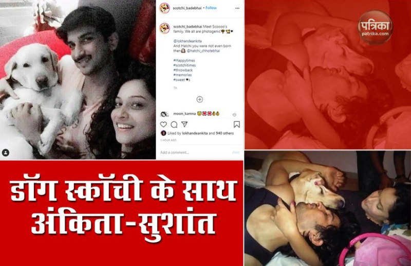 सुशांत को कुत्तों से बेहद प्यार था। वो अपने डॉग फज (Sushant Dog Fudge) को भी बहुत दुलारते थे। जब वो अंकिता लोखंडे के साथ रिलेशनशिप में थे तब उनके पास स्कॉची नाम का डॉग भी था। ब्रेकअप के बाद से स्कॉची अंकिता (Scotchi with Ankita Lokhande) के साथ ही रहता है। फिलहाल स्कॉची नाम के इंस्टाग्राम पेज पर सुशांत, अंकिता और डॉग की तस्वीर सोशल मीडिया पर वायरल (Sushant Ankita scotchi photo viral) हो रही है। इसमें कैप्शन लिखा गया है- स्कू की फैमिली से मिलिए। हम सब ही फोटोजेनिक हैं। इसमें अंकिता लोखंडे को टैग भी किया गया है। अंकिता के एक और डॉग जिसका नाम हैची (Ankita another dog Hatchi) है उसको लेकर लिखा गया है कि तुम तब नहीं पैदा हुए थे। इसमें हैप्पी टाइम्स, थ्रोबैक, पुरानी यादें जैसे हैशटैग भी दिए गए हैं।