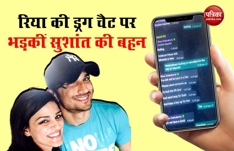 सुशांत की बहन श्वेता सिहं कीर्ति ने व्हाट्सअप चैट (Rhea whatsapp chat) का एक स्क्रीनशॉट शेयर करते हुए लिखा – अब हम किस निष्कर्ष पर पहुंचना चाहते हैं?? एसएसआर के दोषियों को गिरफ्तार करो #ArrestCulpritsOfSSR। श्वेता द्वारा शेयर किए गया चैट 21 जुलाई 2019 का है। इसमें आयुष एसएसआर द्वारा लिखा गया है जब तुम जाना तो डूबी ले आना। जिस ग्रुप की ये चैट है उसका नाम Team SSR है। एक मैसेज में सिद्धार्थ पिठानी (Siddharth Pithani) लिखते हैं कि SSR के पास डूब्स हैं ना। तो जवाब में लिखा जाता है कि हां।