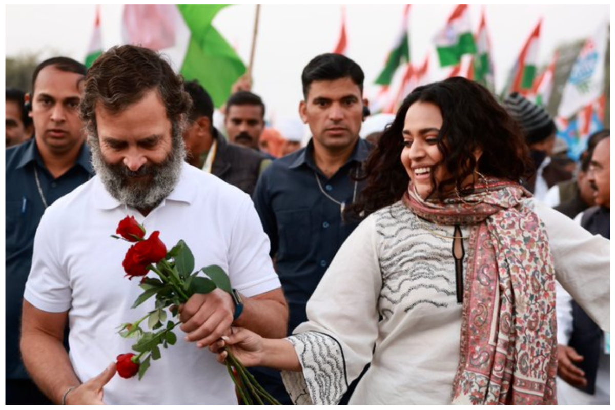 स्वरा भास्कर अकसर अपने बेबाक अंदाज और सार्वजनिक मुद्दों पर खुल कर राय रखने के लिए जानी जाती हैं। स्वरा पहले भी कांग्रेस की इस यात्रा का समर्थन कर चुकी हैं।