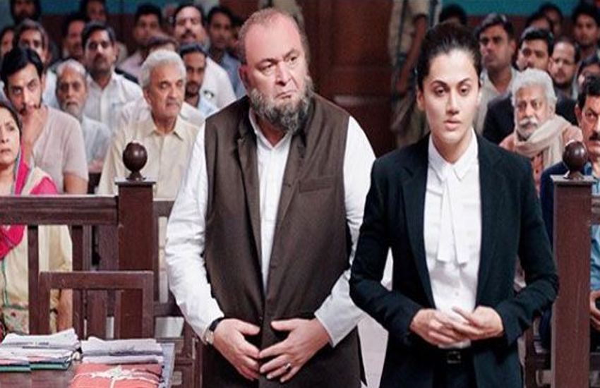 फिल्म की कहानी सच्ची घटनाओं पर आधारित है। फिल्म के पहले पोस्टर में तापसी पन्नू वकील की ड्रेस में कोर्ट रुम में नजर आ रही हैं जबकि उनके पीछे ऋषि कपूर उन्हें गुस्से में देखते हुए नजर आ रहे हैं। यह फिल्म 27 जुलाई को रिलीज होने वाली है।