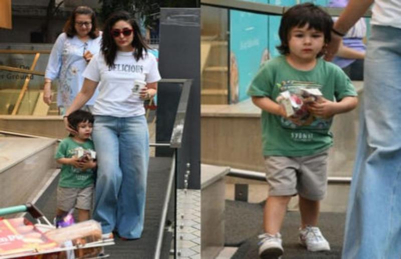 करीना कपूर बेटे तैमूर अली खान (Taimur Ali Khan) की हर ख्वाहिश का पूरा ख्याल रखती हैं। हाल ही में तैमूर के बर्थडे पर भी उनका फेवरेट केक आया था जो क्रिसमस थीम पर बेस्ड था। सोशल मीडिया पर तैमूर के जन्मदिन की फोटोज़ और वीडियोज़ खूब छाए रहे। फिलहाल तैमूर क्रिसमस की शॉपिंग में बिज़ी हो गए हैं। इस दौरान करीना (Kareena Kapoor) बेटे तैमूर को पूरी तरह से संभालती हुईं नज़र आईं। करीना ने एक हाथ में कॉफी पकड़ी थीं और दूसरे से तैमूर को सपॉर्ट कर रही थीं। तैमूर ग्रीन टी-शर्ट में काफी क्यूट नज़र आ रहे थे।