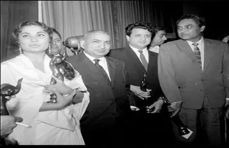 फ़िल्मफ़ेयर अवार्ड समारोह में साथ खड़े नजर आए संगीतकार जोड़ी शंकर-जयकिशन के साथ मीना कुमारी और अशोक कुमार