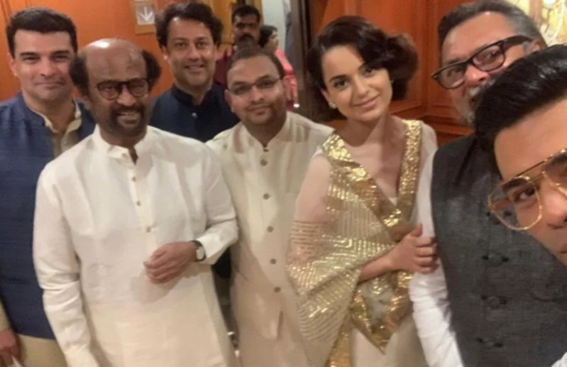 इस दौरान स्मृति ईरानी लाल रंग की साड़ी पहने नजर आईं। करण जौहर भी इस समारोह में पहुंचे। वह काले रंग के कुर्ते पैजामे में नजर आ रहे हैं। इस दौरान रजनीकांत के साथ सभी सितारों में सेल्फी ली।