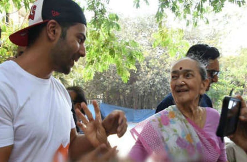 ऐसा करते देख मीडिया ने उन्हें घेर लिया। इस महिला की मदद करते वरुण की तस्वीरें सोशल मीडिया पर वायरल हो रही है। तस्वीरों में बुजुर्ग महिला वरुण धवन को आशीर्वाद भी देती दिखाई दे रही हैं।