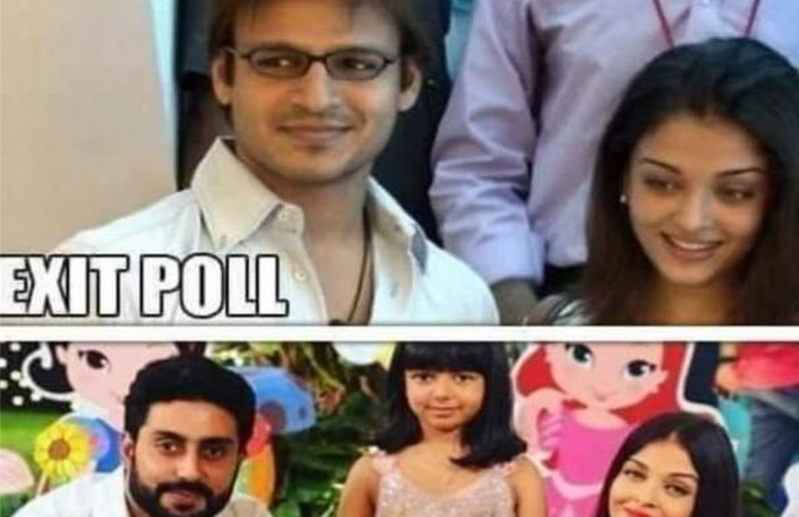 इसमें ऐश्वर्या-सलमान को ओपिनियन पोल, ऐश्वर्या-विवेक को एग्जिट पोल और ऐश्वर्या-अभिषेक को रिजल्ट बताया गया है। इसके साथ विवेक ने कैप्शन दिया, 'हाहा! क्रिएटिव! यहां कोई राजनीति नहीं...बस जिंदगी।'