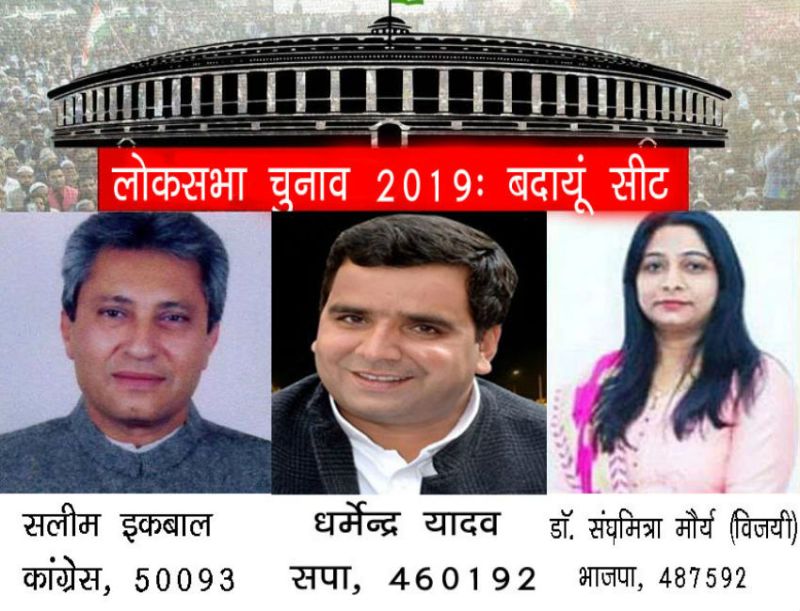 बदायूं। लोकसभा चुनाव 2019 में भारतीय जनता पार्टी ने सैफई परिवार की पारंपरिक सीट हथिया ली है।यहां से भाजपा प्रत्याशी संघमित्रा मौर्य ने समाजवादी पार्टी के सिटिंग सांसद और अखिलेश के भाई धर्मेन्द्र यादव को हराया है।