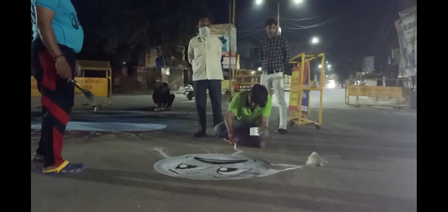 बुलंदशहर। जिले में तीन शिक्षक अनोख तरीके से लोगों को कोरोना वायरस से बचने का रास्ता बता रहे हैं। इन्होंने लोगों को जागरूक करने के लिए एक मुहिम छेड़ी गई है। बुलंदशहर में इसके लिए तीन टीचर सड़कों पर पेंटिंग बना रहे हैं। इस स्ट्रीट पेंटिंग में पृथ्वी को कोरोना वायरस से संक्रमित दिखाया गया है। साथ ही लगातार हाथ धोते रहने के लिए भी स्ट्रीट पेंटिंग के द्वारा जागरूक किया जा रहा है।