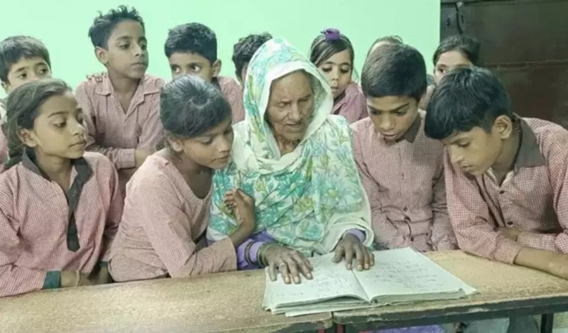 साक्षर भारत अभियान के तहत बुलंदशहर के प्राथमिक विद्यालय में शिक्षा ग्रहण करती 92 साल की बुजुर्ग महिला सलीमन।