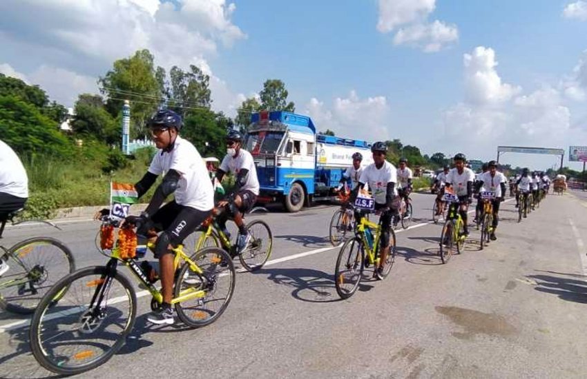 जिले के खुर्जा में 35 जवान साइकिलों पर सवार होकर पहुंचे। वहीं यात्रा में सीआईएसएफ के 86 जवान रहे। उन्होंने बताया कि यात्रा का मुख्य उद्देश्य अहिंसा, एकता और आपसी भाईचारे का संदेश देना है। यात्रा के दौरान यही संदेश वह लगातार लोगों को दे रहे हैं।