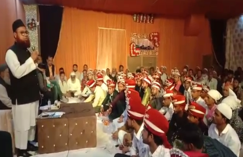 बुलंदशहर. उत्तर प्रदेश के बुलंदशहर में मुख्यमंत्री सामूहिक विवाह योजना के अंतर्गत रविंद्र नाथ शाला में आज लगभग 275 दंपत्ति एक सूत्र में बांधे गए। इनमें से लगभग 50 दंपत्ति मुस्लिम थे। दोनों धर्म के दंपतियों की शादी उनके रीति रिवाज से दी गई। एक ही पंडाल के नीचे मंत्र उच्चारण हुआ तो दूसरी ओर मौलवियों ने निकाह भी पढ़ा। सारा जिला प्रशासन आशीर्वाद देने के लिए इस मंडप और पंडाल में उपस्थित था और प्रदेश के वन एवं पर्यावरण मंत्री अनिल शर्मा में भी कार्यक्रम में शिरकत कर नव दंपति को सुखद जीवन यापन करने की कामना कर आशीर्वाद दिया।