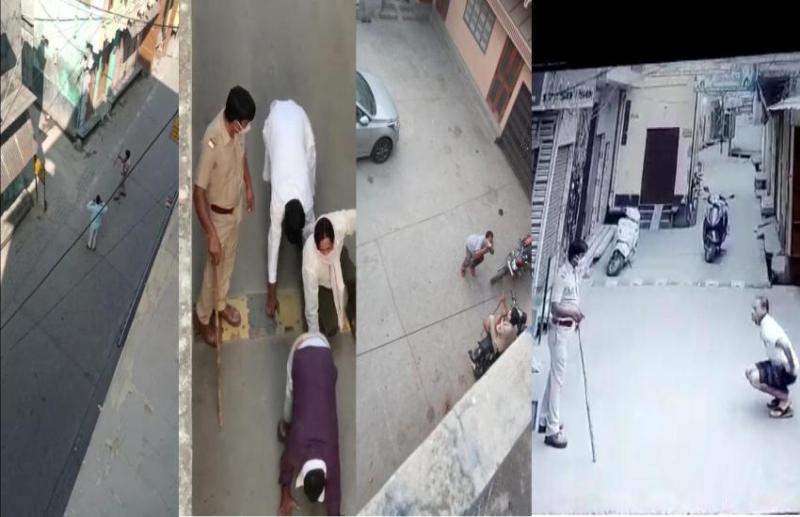 बुलंदशहर। जनपद में पुलिस लॉकडाउन का सख्ती से पालन कराने में जुटी हुई है। बेवजह घरों से बाहर निकलने वालों के खिलाफ सख्त कार्रवाई भी की जा रही है। इस कड़ी में पुलिस ने शुक्रवार को सड़क पर लॉकडाउन का उल्लंघन करने वाले लोगों को कहीं पिठ्ठू चाल चलवाया तो कहीं उठक-बैठक लगवाई। पुलिस का मन इस पर भी नहीं माना तो लोगों को सड़क पर हाथ और पैर के बल जानवरों की तरह चलवाकर सबक सिखा दिया। सड़क पर सजा के पांच वीडियो सोशल मीडिया पर खूब वायरल हो रहे हैं।