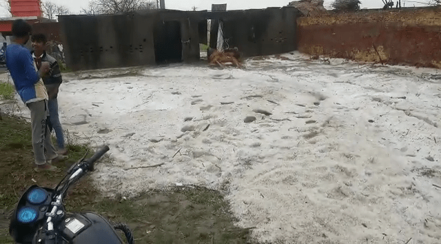 बुलंदशहर। मौसम ने होली के बाद ऐसी करवट बदली है कि हर कोई हैरान है। बुलंदशहर में पहली बार शुक्रवार को ऐसी 'बर्फबारी' हुई कि वहां कश्मीर जैसा नजारा दिखा। 'बर्फबारी' से पहले बुलंदशहर में चक्रवात ने दस्तक दी थी, जिस कारण कई लोग घायल भी हुए थे। मौसम विभाग ने शनिवार को भारी बारिश के साथ तेज हवा चलने की संभावना जताई है।