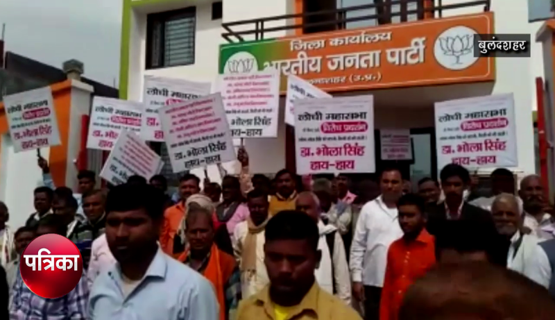 बुलंदशहर में बुधवार को लोधी समाज के सैकड़ों लोगों ने गंगापुरम में बने भाजपा ऑफिस के बाहर जमकर प्रदर्शन किया। उन्होंने डॉ. भोला सिंह के खिलाफ नारेबाजी भी की। सांसद पर विकास ना करने के गंभीर आरोप भी लगाए गए। लोधी समाज के लोगों ने बताया कि डॉ. भोला सिंह जब से सांसद बने हैं। ना तो वह किसी फंक्शन में गए हैं और ना ही किसी के गम में गए हैं। जब भी वे उनके यहां आते हैं तो वह ठीक से जवाब नहीं देते। ऐसे में वे भाजपा सांसद का बहिष्कार कर रहे हैं। उन्होंने चेतावनी दी कि चुनाव में अगर भोला सिंह को टिकट दिया जाता है तो लोधी समाज भाजपा का बहिष्कार करेगी। उनका कहना है कि डॉ. भोला सिंह को उत्तर प्रदेश के पूर्व मुख्यमंत्री और राजस्थान के राज्यपाल कल्याण सिंह का आशीर्वाद मिला था। तब उनको भाजपा से टिकट मिला था मगर जनता के बीच में वह खरे नहीं उतरे।