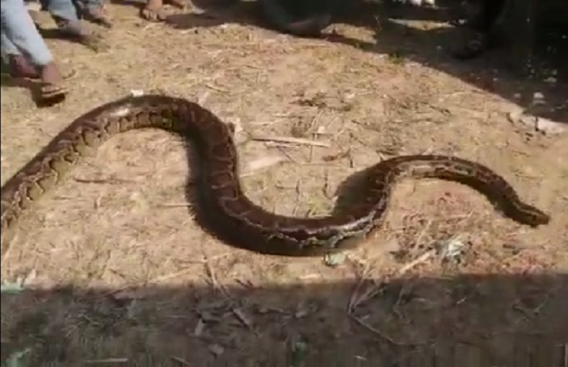 गांव के निवासी राकेश ने बताया कि सोमवार की सुबह अजगर देखा गया था, जिससे गांव में बच्चों और लोगों में दहशत का माहौल है। उसने बताया कि वन विभाग के अधिकारियों को सूचना दी गई थी। इसके बाद वन विभाग के अधिकारी अजगर को पकड़कर अपने साथ ले गए।