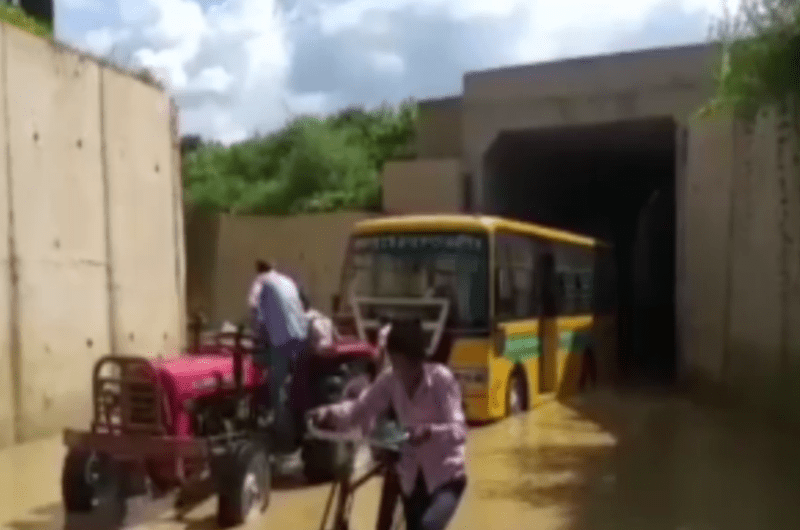 जानकारी के अनुसार शुक्रवार सुबह स्कूल बस बच्चे लेकर स्कूल जा रही थी। उसी दौरान बस में 20 से ज्यादा बच्चे सवार थे। स्कूल बस बसंती देवी जूनियर हाई स्कूल की थी। बस अंडरपास के पास पहुंचते ही यहां भरे पानी में फंस गई। घंटों की कोशिश के बाद भी जब बस नहीं निकल सकी। तो आसपास के लोगों की मदद से कंडक्टर ड्राइवर ने बच्चों का गोदी में बस से निकाला। और उसके बाद गांव वालों की मदद से ट्रैक्टर बुलवाया गया। फिर बस को निकाला गया। घंटों के बाद स्कूल के लिए बच्चे रवाना हुए।