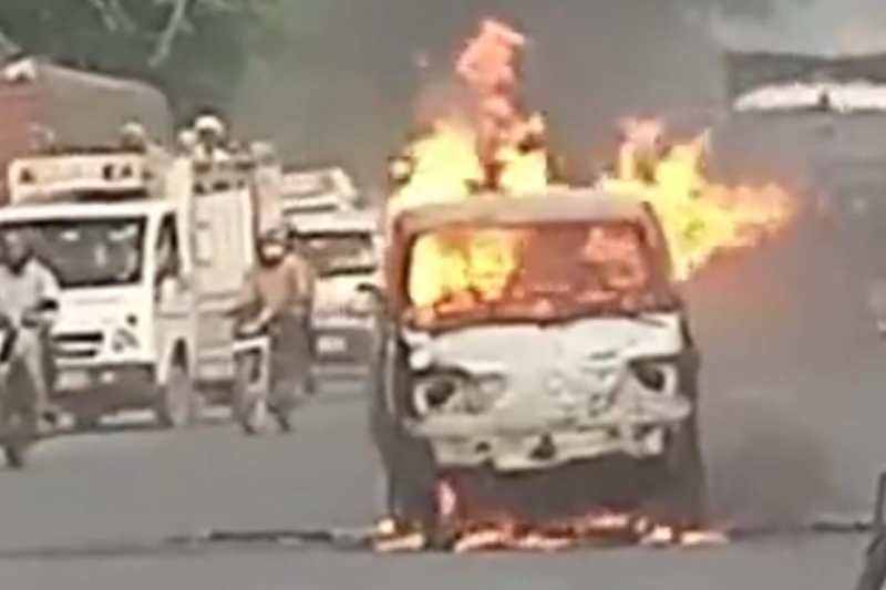रविवार सुबह श्रद्धालुओं से भरी मारुति वैन में सीएनजी लीक होने के बाद आग लग गई। इस हादसे में 5 बच्चों समेत 9 लोग झुलस गए। फिलहाल सभी को इलाज के लिए हास्पिटल में भर्ती कराया गया है। गंभीर हालत को देखते हुए उन्हें हायर सेंटर रेफर कर दिया।