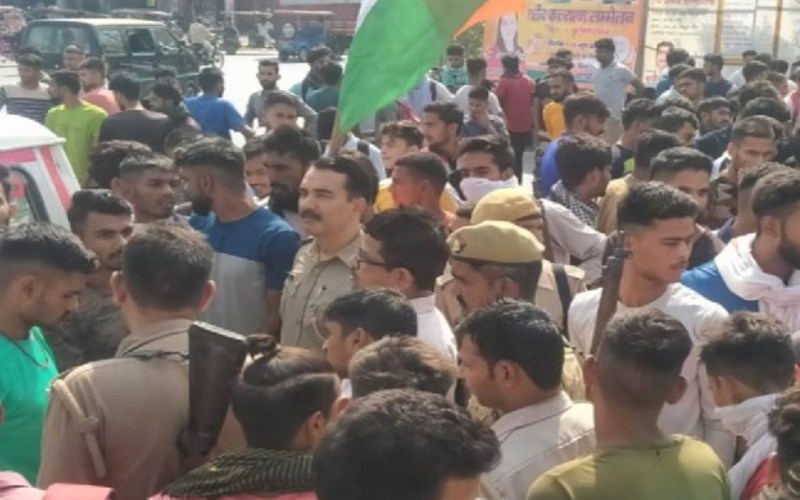 जानकारी के बाद मौके पर पहुंचे एसडीएम आशीष कुमार युवकों को समझाने का प्रयास किया लेकिन युवकों ने एक नहीं सुनी और चौराहे पर जाम लगाकर बैठ गए। बता दें कि केंद्र सरकार ने सेना भर्ती में नए नियम जारी करते हुए अग्निपथ योजना की शुरूआत की है। जिसके तहत युवाओं को चार साल तक सेना में नौकरी मिलेगी। इसके विरोध में आज गुरुवार सुबह जिले के गांव से युवाओं का हुजूम हाथ में तिरंगा झंडा लेकर जिला मुख्यालय की तरफ कूच कर गया। भारी संख्या में युवा हाथ में तिरंगा लिए भूड़ चौराहा पर पहुंचे और केंद्र सरकार के खिलाफ नारेबाजी करने लगे। युवाओं की मांग थी कि सेना भर्ती के नए नियमों को वापस लिया जाए और जल्द ही भर्ती प्रक्रिया शुरू की जाए। चौराहा जाम होने से सड़क पर दूर तक वाहनों की लंबी लाइन लग गई।