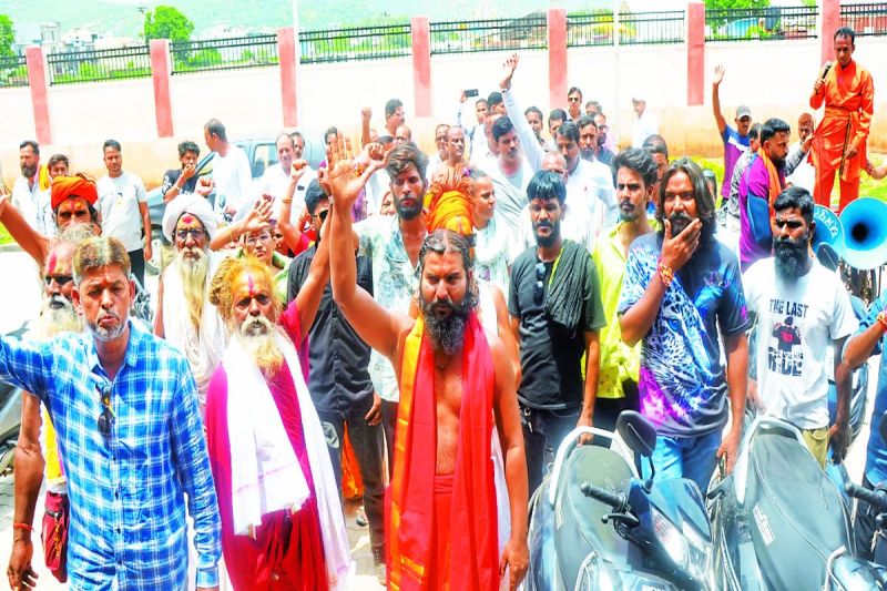 बूंदी. नगरपरिषद के बाहर प्रदर्शन करते संत व सर्व हिन्दू समाज के लोग।