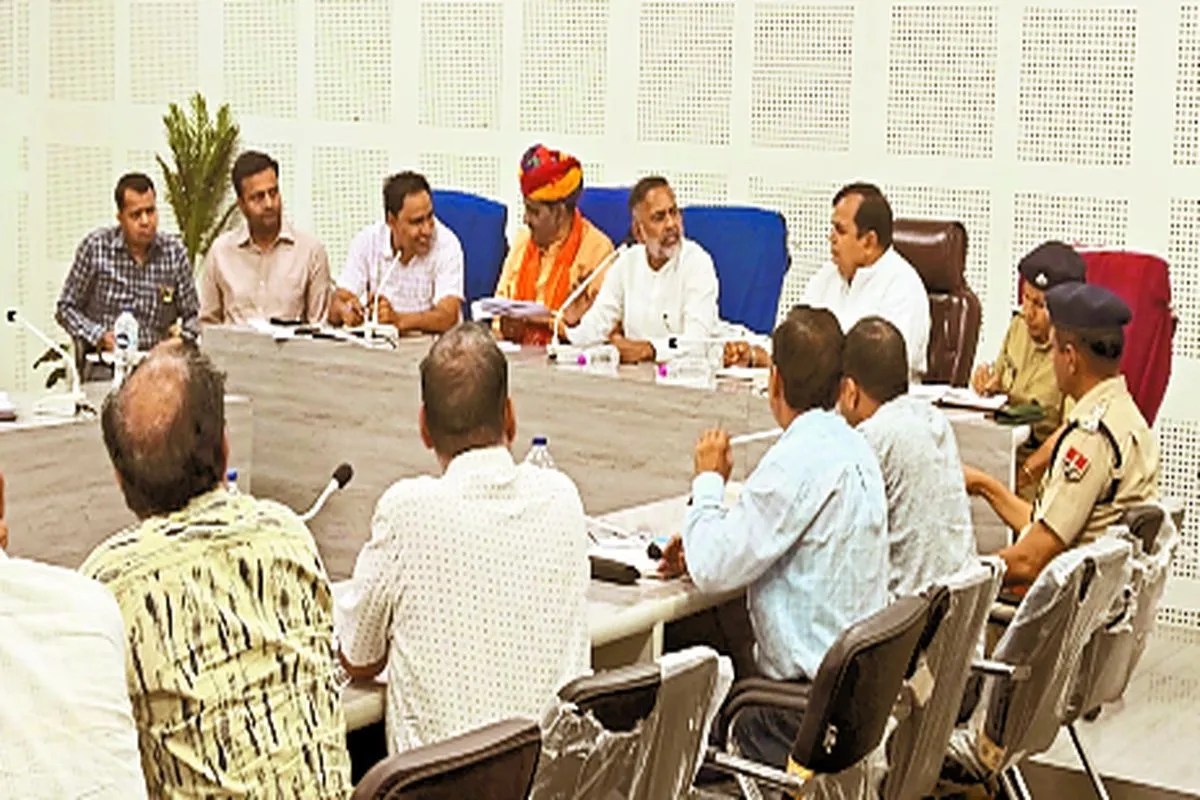 हिण्डोली. जिला प्रभारी मंत्री हीरालाल नागर अधिकारियों की बैठक लेते हुए।