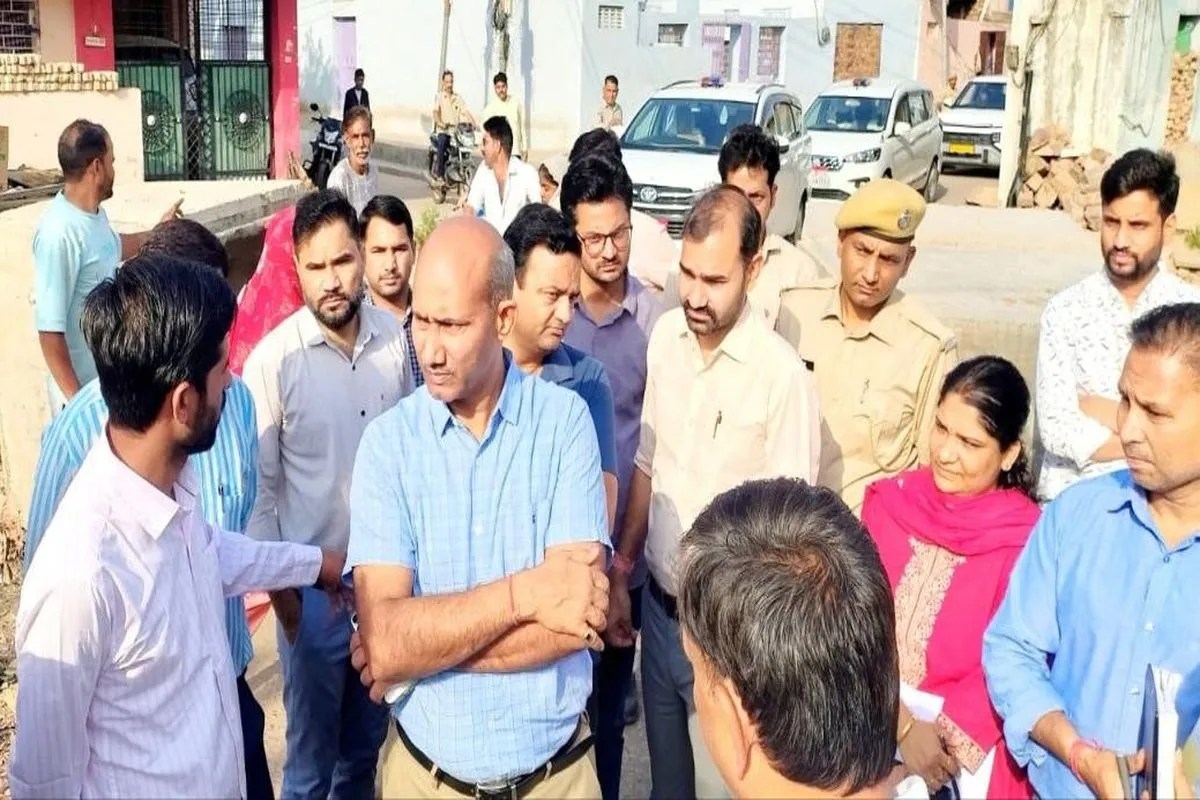 बूंदी. शहर में निरीक्षण के दौरान अधिकारियों से चर्चा करते जिला कलक्टर हरफूल सिंह यादव।