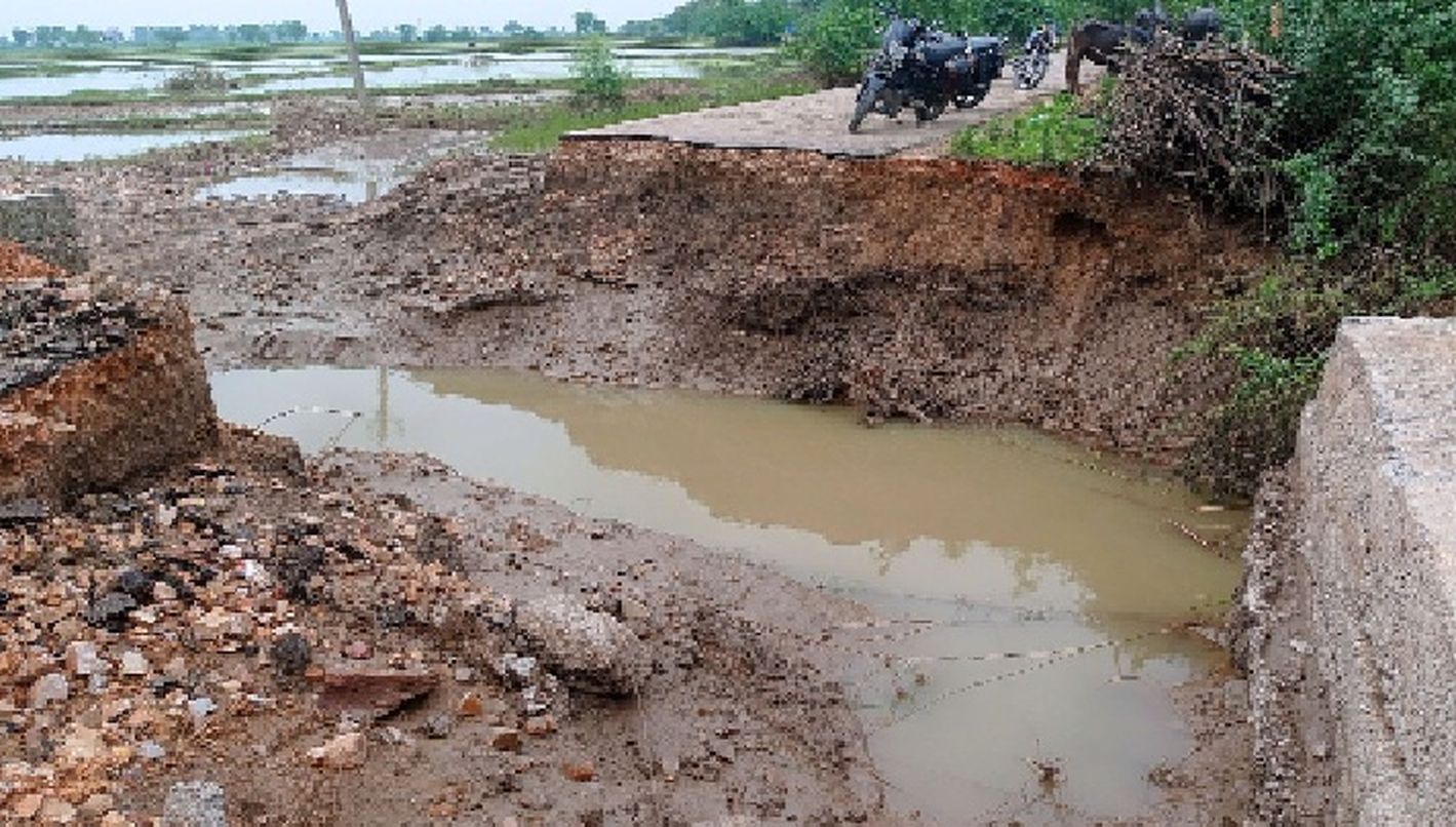 बरसाती पानी से दो धड़ों में बंट गई सड़कें