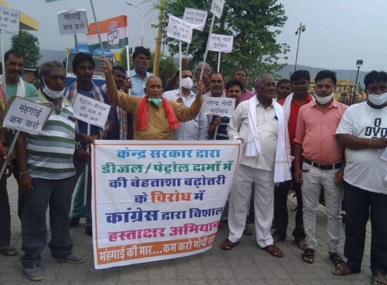 पेट्रोल-डीजल के बढ़ते दामों का विरोध, कांगे्रस ने किया प्रदर्शन