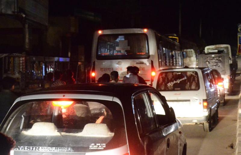 प्रत्यक्षदर्शियों ने बताया कि चिकित्सालय के गेट पर रात को दो बसें आगे पीछे खड़ी थी। एक बस उनके बराबर में खड़ी कर दी। जिससे रास्ता पूरी तरह से जाम हो गया। बसें सवारियों के उतरने और चढऩे के दौरान यों ही खड़ी रही। उन्हें आस-पास के लोगों ने टोका भी, लेकिन सभी बसों के चालक बेपरवाह दिखे। इससे कुछ देर यहां माहौल भी गर्मा गया था। बाद में एम्बुलेंस चालक ने नीचे उतरकर बस चालकों को कहा तब वह हटे।