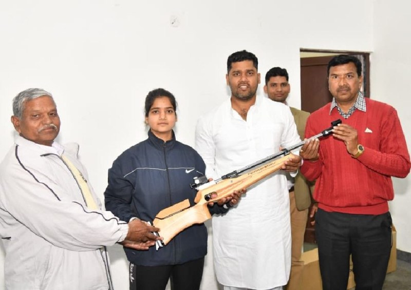राज्यमंत्री अशोक चांदना ने जयपुर में सौंपी बूंदी की बेटी नेशनल शूटर उर्मिला को एयरगन