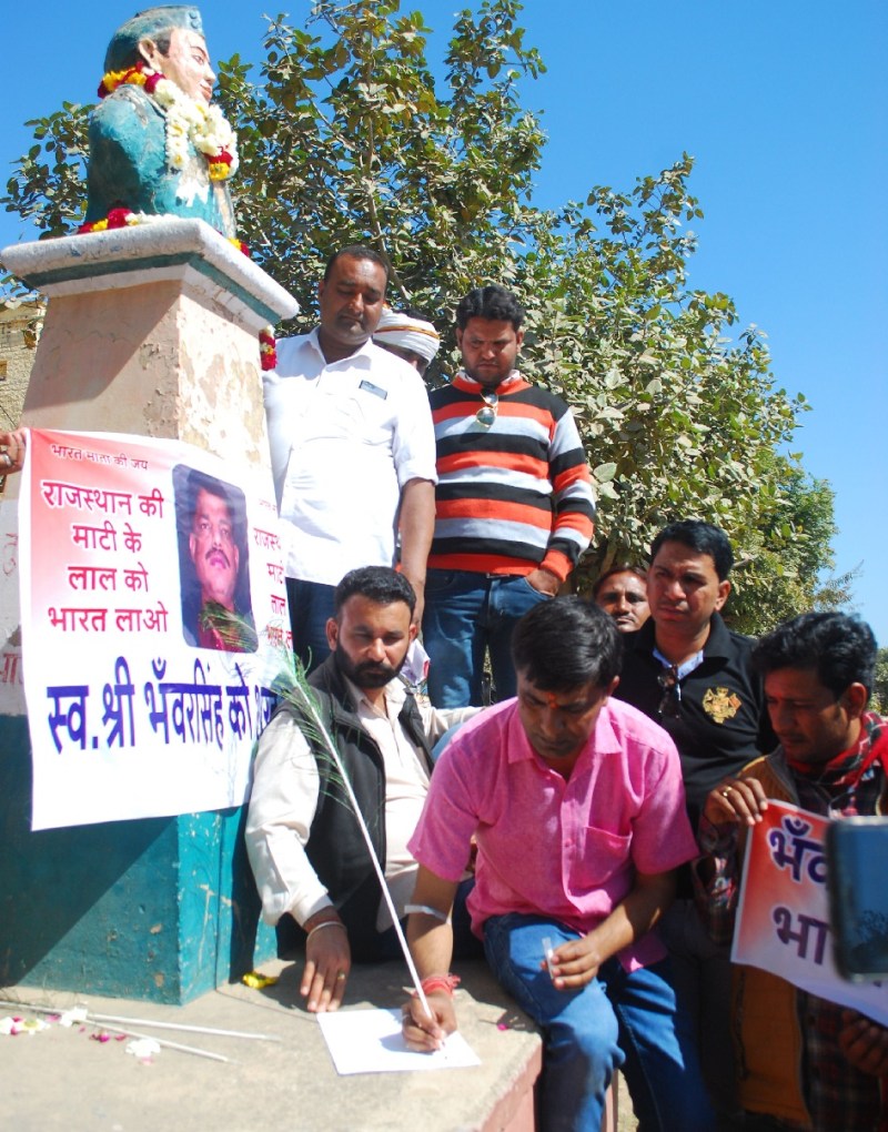 रविवार को बड़ी संख्या में लोगों ने राष्ट्रपति, प्रधानमंत्री विदेश मंत्री के नाम लिखे गए ज्ञापन पर अपने खून से हस्ताक्षर किए। हस्ताक्षर अभियान के संयोजक जगरूप सिंह रंधावा व एडवोकेट देवराज गोचर ने बताया कि भंवर सिंह के शव को राजस्थान वापस लाने तक राष्ट्रपति, प्रधानमंत्री, विदेश मंत्री के नाम पत्र लिखने का हस्ताक्षर अभियान जारी रहेगा। इस दौरान जिला कांग्रेस कमेटी अभाव अभियोग प्रकोष्ठ के जिलाध्यक्ष महावीर मीणा, बूंदी ब्लॉक अध्यक्ष राजू मीणा, पार्षद रोहित बैरागी, किशन गुर्जर, गुरुतेज सिंह रंधावा, किशन, महावीर परिष्कार, राजकुमार बनवारी आदि लोग मौजूद थे।