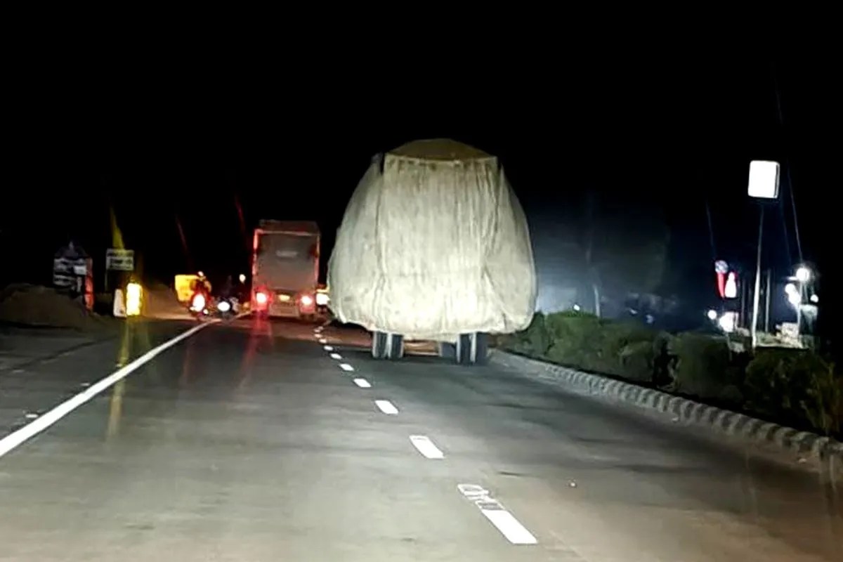 रामगंजबालाजी राष्ट्रीय राजमार्ग 52पर रात्रि के समय तुड़ी भरकर ले जाते ट्रैक्टर ट्रॉली।