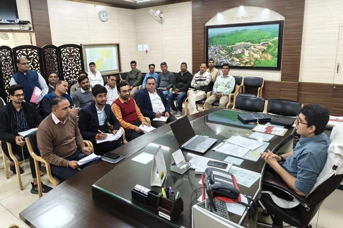 बूंदी. समर्थन मूल्य पर गेहूं की खरीद की समीक्षा बैठक लेते जिला कलक्टर।