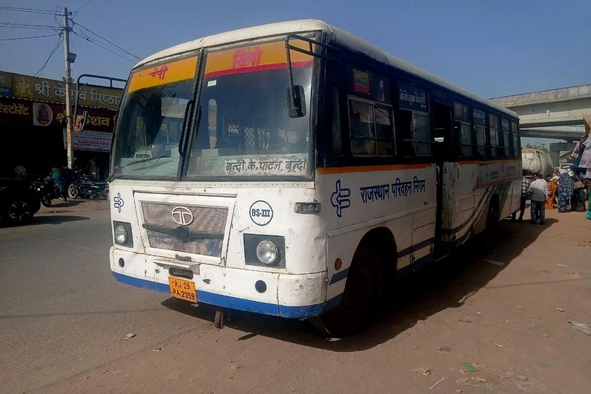 केशवरायपाटन. शहर से बूंदी मुख्यालय जाने वाली एक रोडवेज बस।