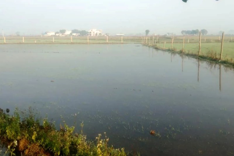नमाना क्षेत्र के प्रेमपुरा गांव में एक खेत पर गेहूं की फसल में भरा नहर का पानी।