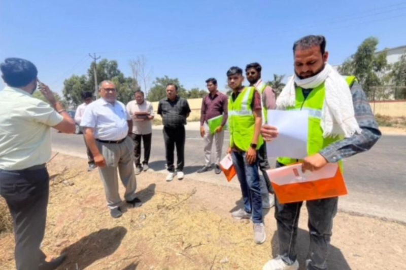 हिण्डोली. गुण नियंत्रण मुख्य अभियंता सड़क का निरीक्षण करते हुए।