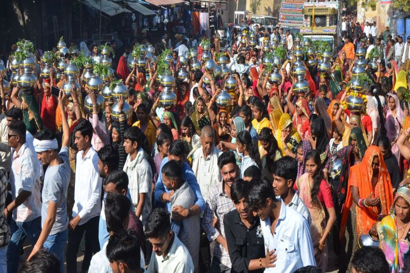 बूंदी. गुर्जर समाज की ओर से निकाली गई कलश यात्रा में शामिल महिलाएं व पुरुष।
