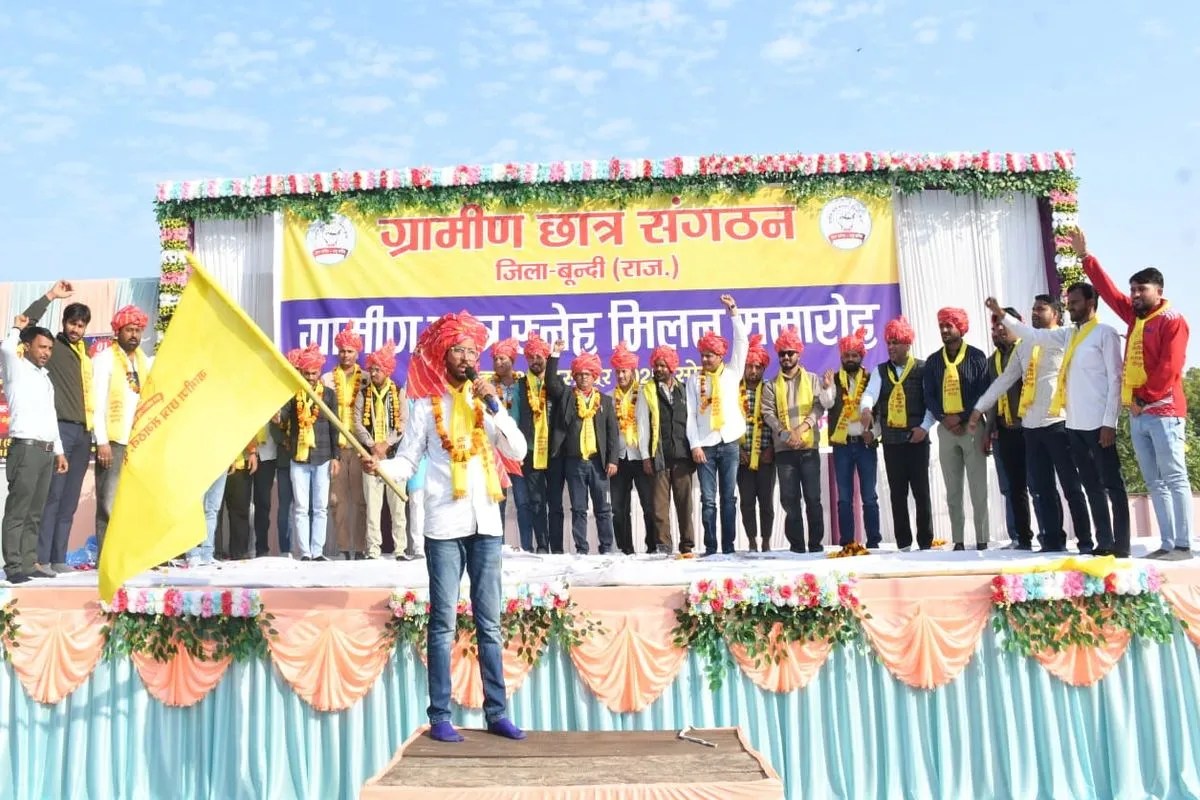 बूंदी. ग्रामीण छात्र संगठन के स्नेह मिलन समारोह में मंचासीन अतिथि व अन्य।